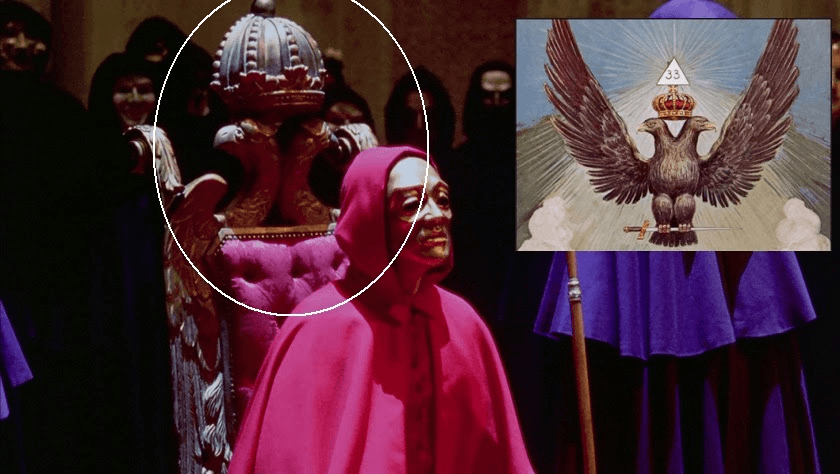 Osservando la scena dell'orgia in Eyes Wide Shut, non stai solo assistendo a un rituale sessuale: si entra in un microcosmo di potere e simboli occulti. Il trono con l'aquila bicipite non è un dettaglio casuale: richiama il 33° grado della massoneria, il vertice di una gerarchia invisibile che domina leggi e regole.